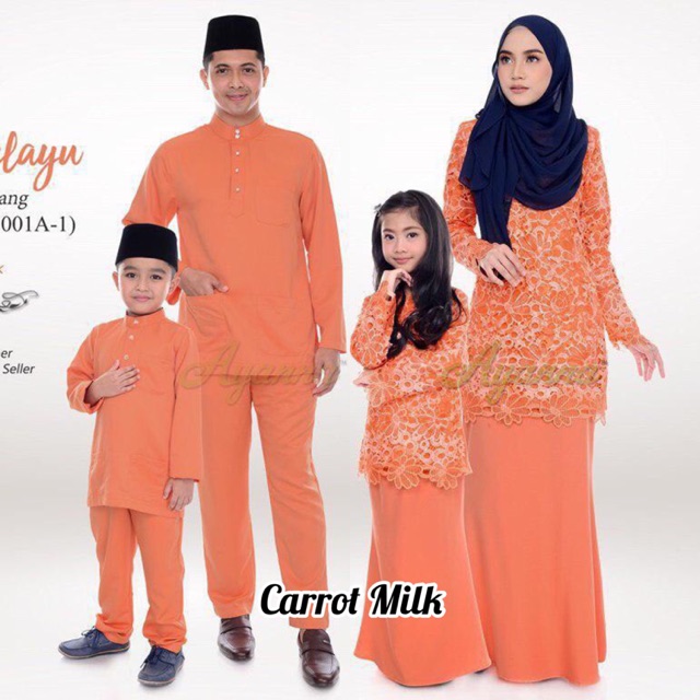 Set Combo Sedondon Family Ayanna Baju Melayu Kurung Raya 2020 Soraya Lace Plussize Tema Carrot Milk Orange Oren Shopee Malaysia